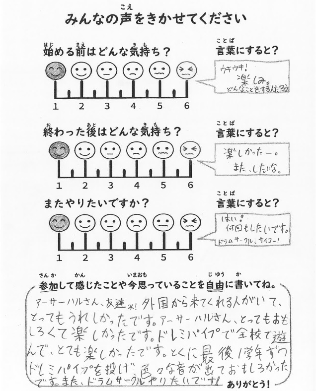 終了後、校長先生から子供たちの感想文をいただきましたので一部掲載いたします。